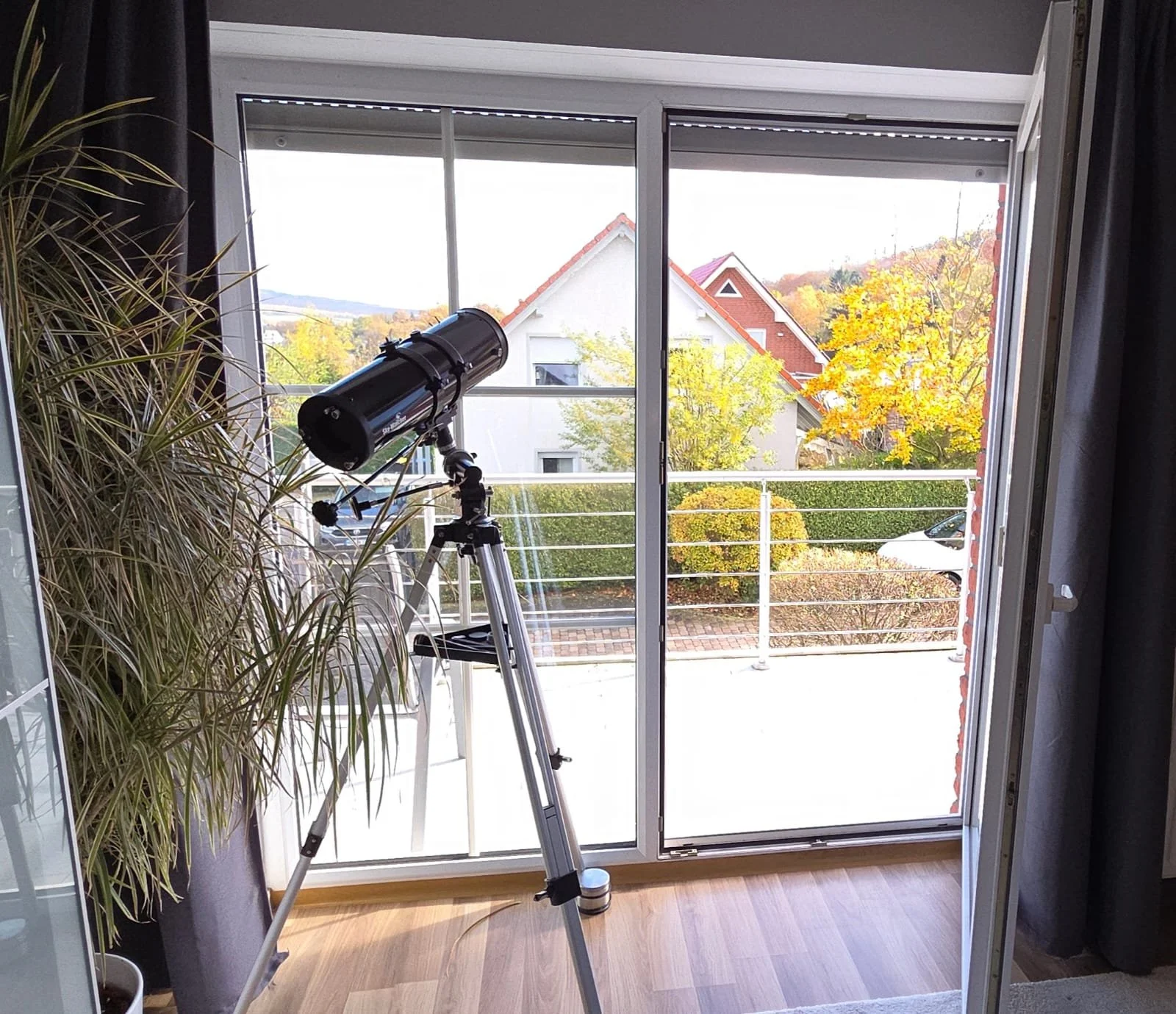 Ein außergewöhnlich großes Zimmer mit Einbauschränken, großen Fenstern und einer Tür zum Balkon mit Blick auf die fernen Hügel. Für zwei Personen kann dieses Zimmer als Wohnzimmer genutzt werden.